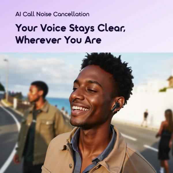 Dual microphones with AI noise reduction ensure your voice stays clear, even in noisy environments like streets or public transport.
